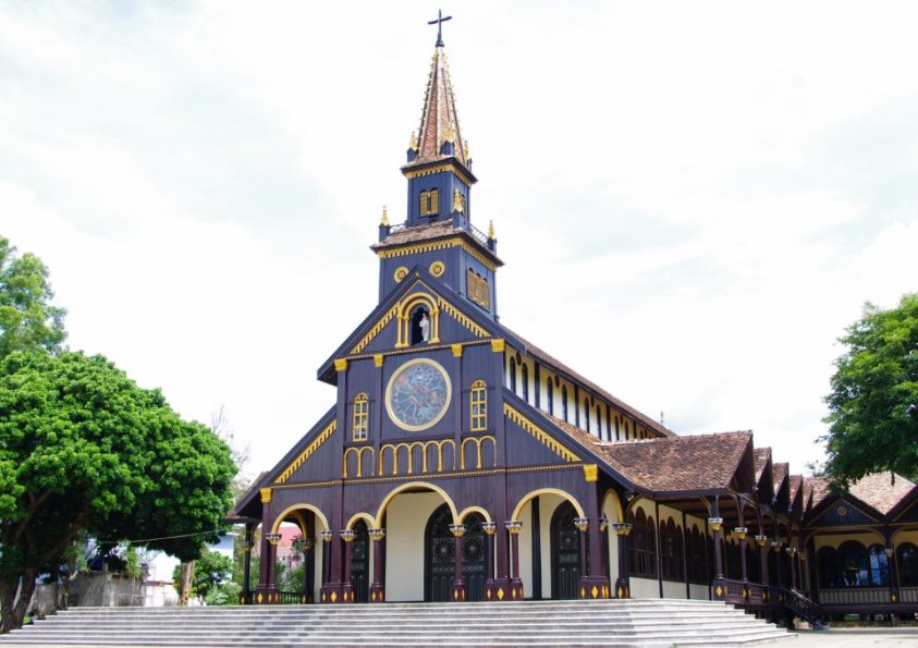 Với tuổi đời hơn một thế kỷ, Nhà thờ gỗ Kon Tum không chỉ là một công trình tôn giáo mà còn là một minh chứng sống động cho sự giao thoa văn hóa, kiến trúc giữa phương Tây và bản địa Tây Nguyên. Nơi đây thu hút du khách bởi vẻ đẹp trầm mặc, những chi tiết chạm khắc tinh xảo và câu chuyện lịch sử đầy cuốn hút ẩn chứa sau từng thớ gỗ. Để hiểu rõ hơn về điểm đến đặc biệt này, chúng ta hãy cùng khám phá về vị trí, lịch sử hình thành cũng như những nét kiến trúc độc đáo đã làm nên tên tuổi của nhà thờ gỗ Kon Tum.